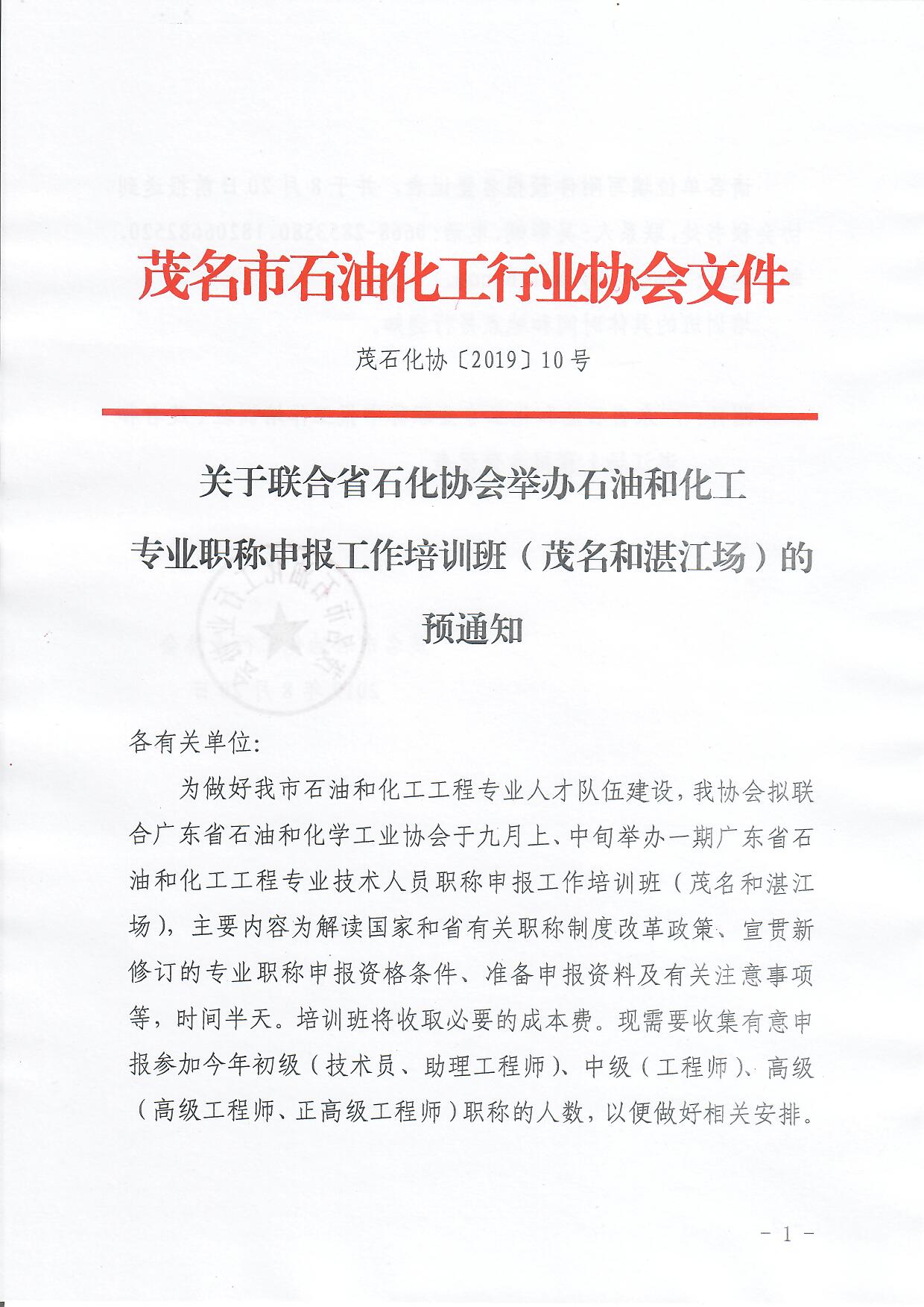 【茂石化協(xié)〔2025〕3號】關(guān)于舉辦2024年度市化工輕工環(huán)保中(初)級專業(yè)職稱評定申報培訓班的通知